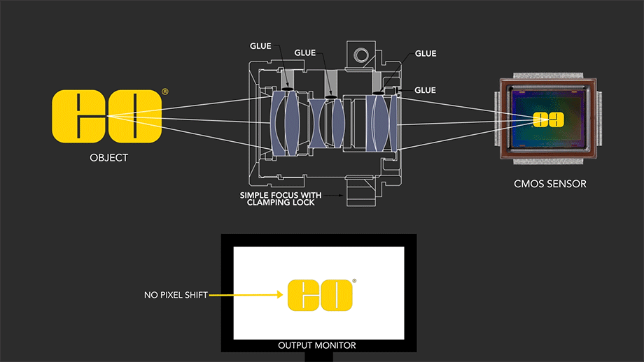 Stabilized ruggedization ensures optical pointing stability and positioning is maintained after shock. In addition to replacing the iris with and a simplified focus mechanism, individual lens elements are glued in place to prevent undesirable motion within the housing.