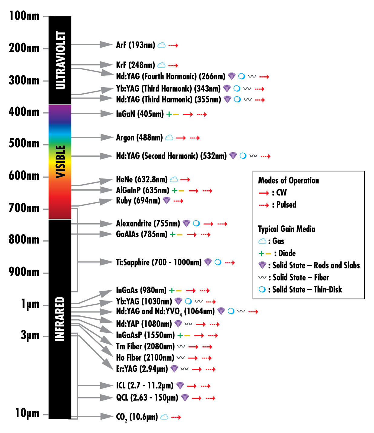 Understanding the most common laser sources, modes of operation, and gain media provides the context for selecting the proper laser for your specific application.