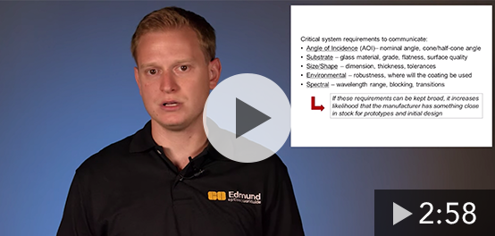 Join Stephan Briggs, Biomedical Engineer at Edmund Optics, as he provides an overview to his webinar including: Key Terminology, Coating Technology, Cost Drivers, and Application Examples.