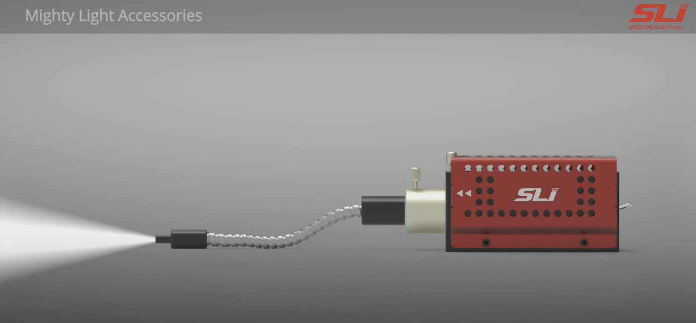 Modular accessories adapt the Spectrolight Mighty Light Illuminator for tuning to a specific wavelength, fiber coupling, collimating, homogenizing, and more