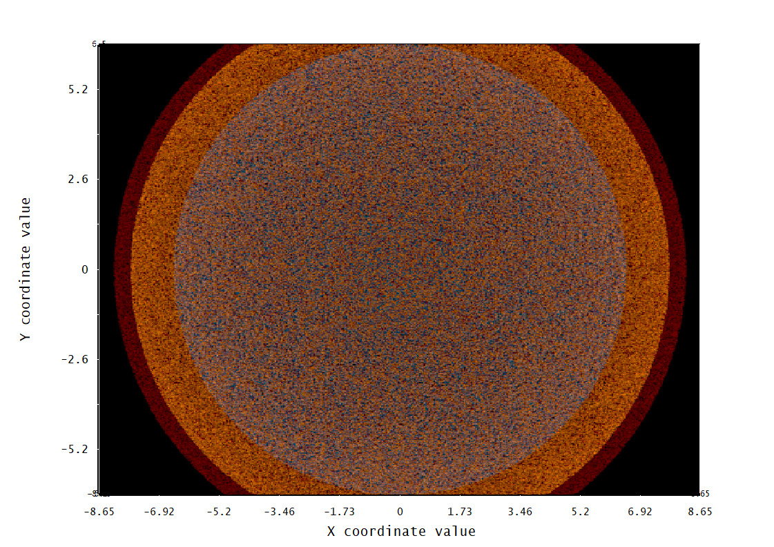 After setting the system up for analysis, a ray trace was conducted (Figure 4). In our simulation, we let the rays split, and saved the results to a ray database (ZRD) file in order to make analysis faster for this particular run. Please note that these files are relatively large, so the compressed version of the complete data is often a good compromise between data density and used storage space. When the ray trace finishes, you can observe the irradiance at the detector plane. The ray trace allows the use of the detector viewer, which will permit different views of the irradiance. A false color view of the irradiance is shown in Figure 5. A linear scale was chosen for the analysis, but log scales are also available. As Figure 5 shows, the issue with the annular drop in irradiance was corrected. This design was chosen for manufacturing.