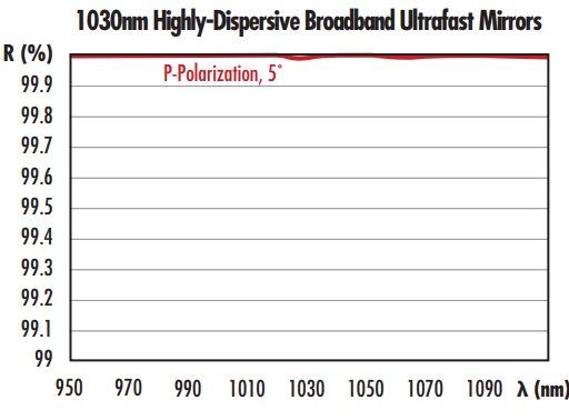 Figure 5: In additional to negative dispersion for ultrafast pulse compression, highly-dispersive mirrors provide high reflectivities to maximize throughput