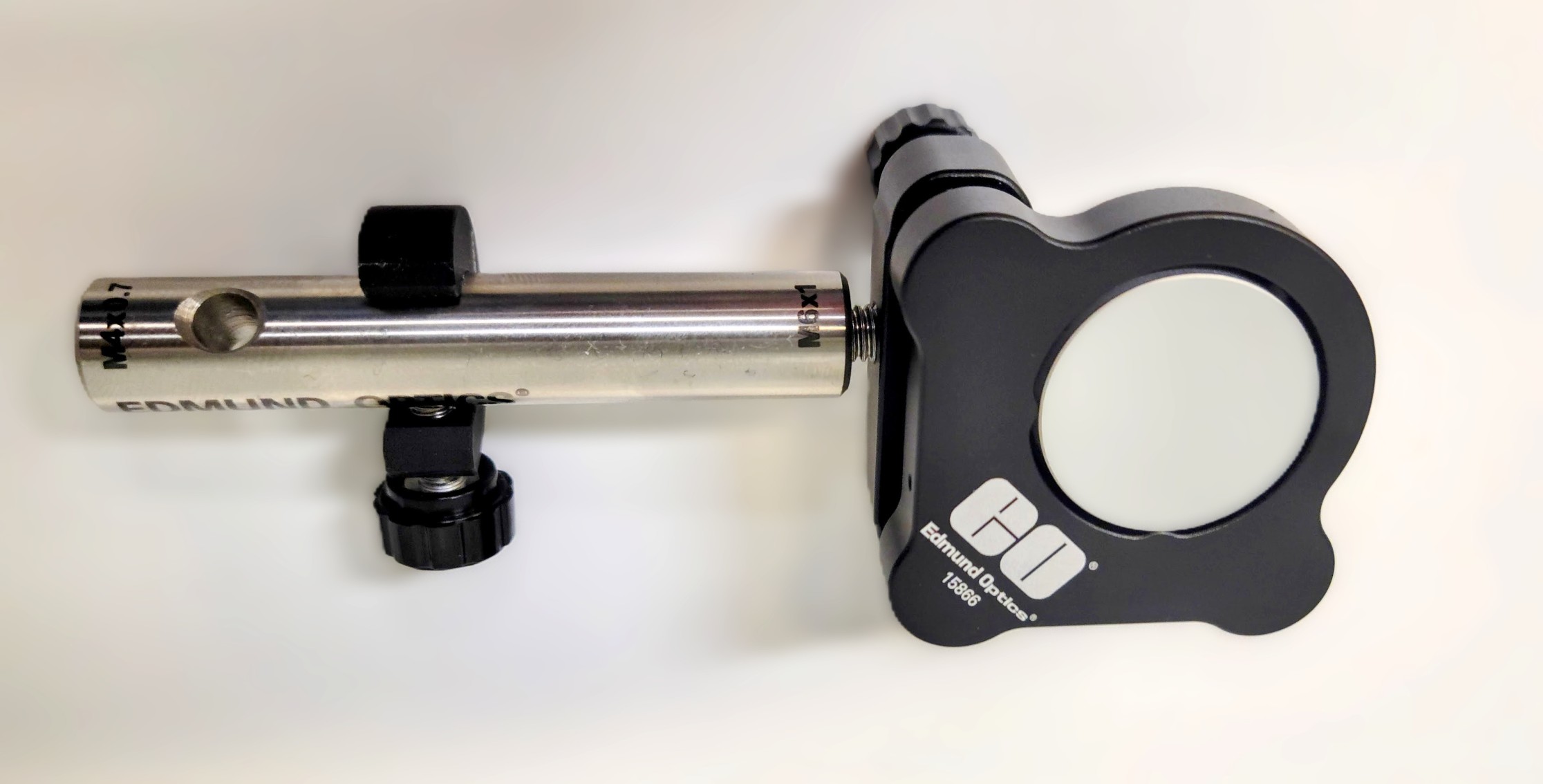 Now you have to assemble the cube beamsplitter mount. The Prism Mount with stock number 53-030 from Edmund Optics® requires a 1/4-20 Thread Adapter in order to be mounted to the post (see Figure 9). Be sure to use Fingercots when handling the TECHSPEC® Beamsplitter Cube to avoid dirt and fingerprints.