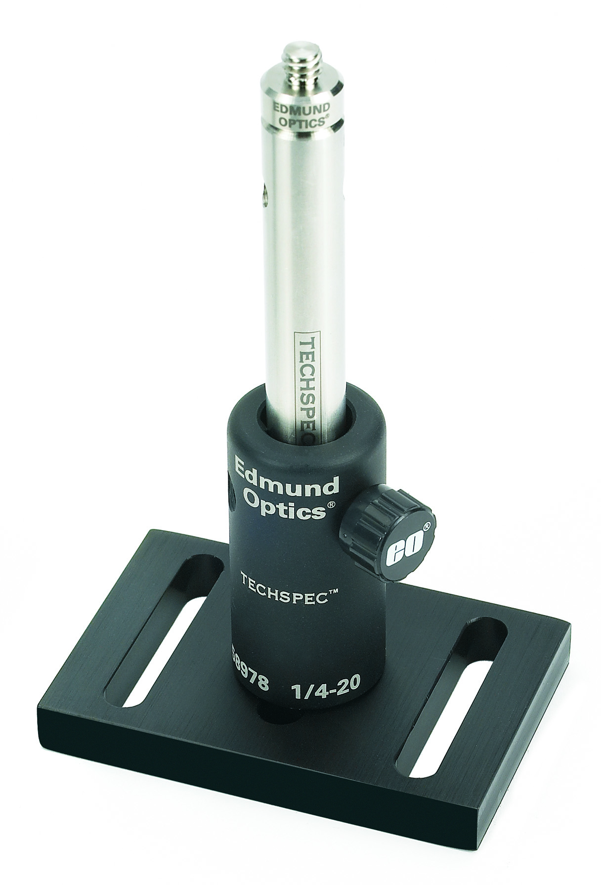 Posts are metal rods, usually threaded on both ends. They may also include male thread adapters. Their thread type (¼”-20 or M6) depends on whether you are working in an imperial or metric system. Posts come in various lengths, and can be combined with adapters to reach the desired optical height. They can be directly screwed into the table using a male thread or mounted in post holders. Post holders provide a stable fixture for posts and allow easier adjustment. A thumbscrew on the side locks the post into place. Post holders themselves are fixed to the table with screws matching the hole pattern. There are two types of post holders: Static post holders hold the post firmly using a three-point contact design. To make vertical adjustments, move the post in and out of the holder and secure it with the locking screw. Fine vertical adjustments are difficult. Adjustable (Z-adjust) post holders easily allow small vertical translations of the post while maintaining orientation. They can serve as a compact alternative to larger z-axis translation stages. Post collars can be used to lock the post height so the post can be rotated within the mount without re-adjusting the height. With the post collar, you can also quickly move mounts in and out of the optical path at the same height position.